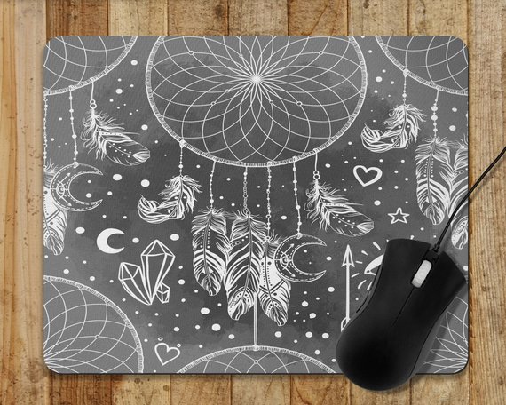 Everyone needs a mouse pad, why not choose one with a happy design? A dream catcher, stars and crystals come together in this whimsical rubber-backed pad by Luna Gallery Designs.